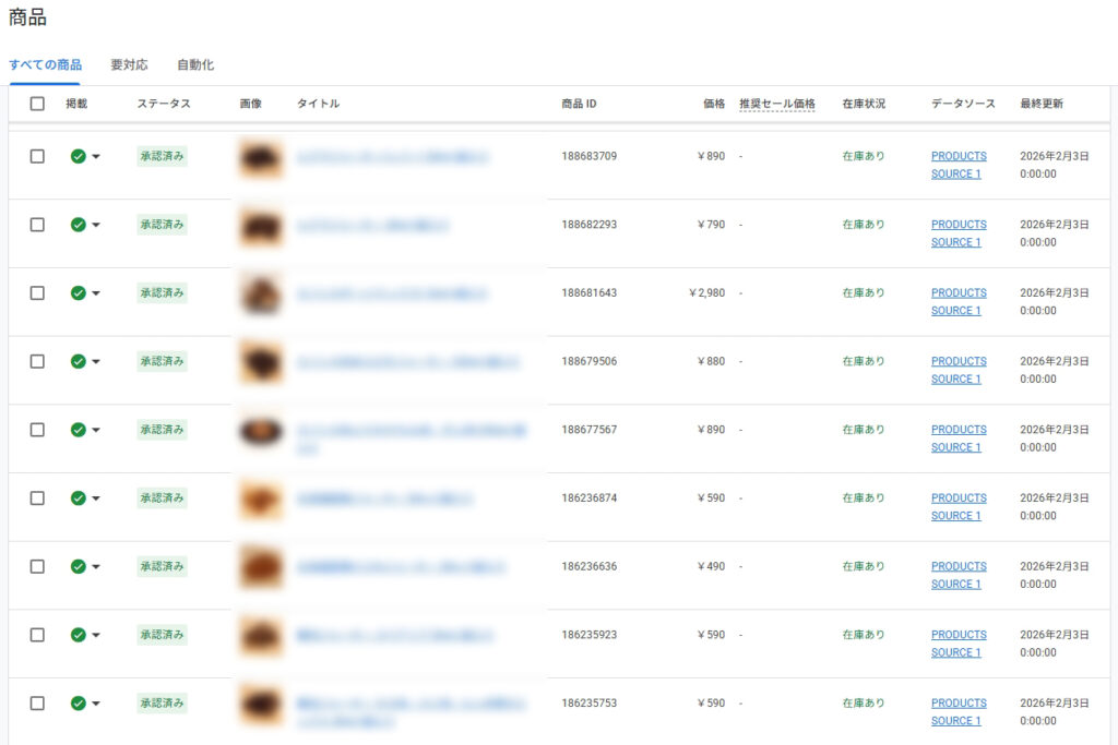 XMLとかCSVで商品データを作って、定期的にGoogleに送る感じ。最初の設定はちょっと大変ですけど、一度作っちゃえば在庫や価格が自動で更新されるので、後が本当に楽になります。